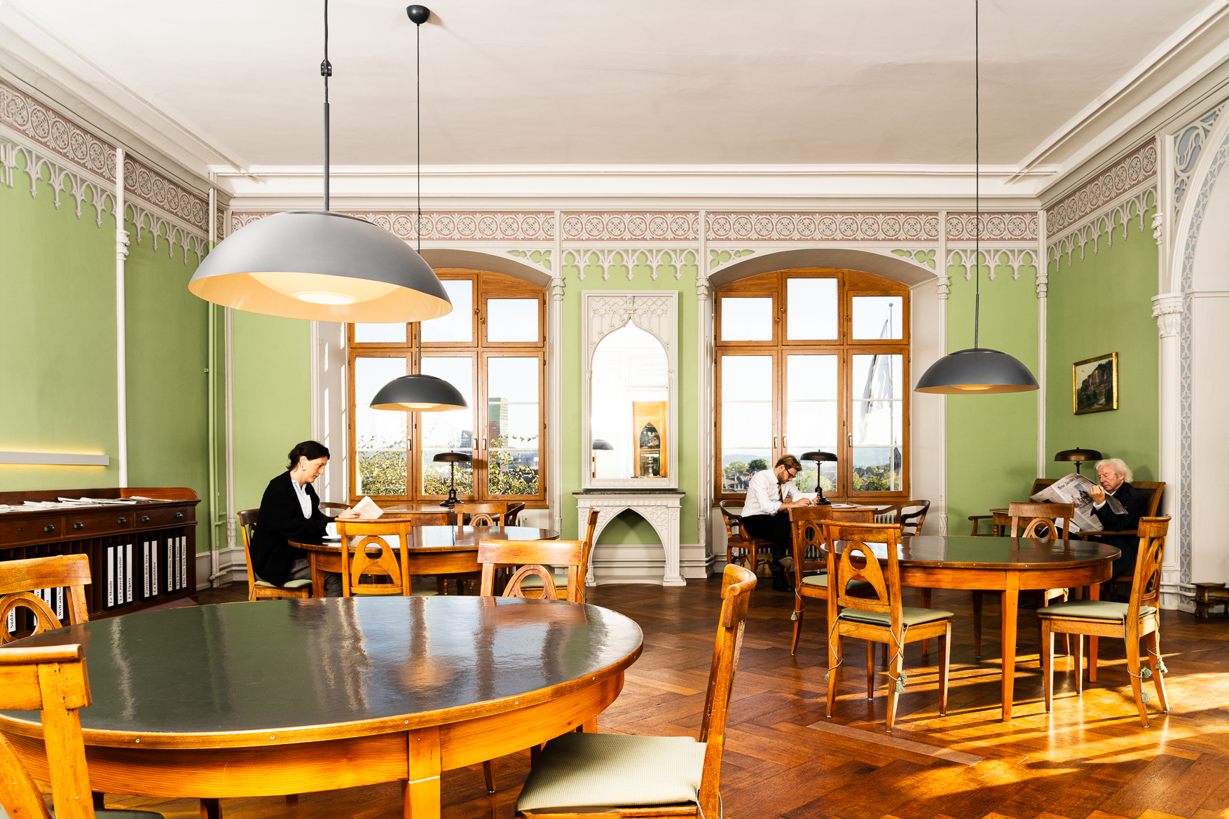 Den Veranstaltungssaal der Allgemeinen Lesegesellschaft kann man mieten. Er bietet Raum für 75 Personen und eignet sich gleichermassen für geschäftliche und private Anlässe, sofern der ruhige Charakter des Hauses nicht zu stark beeinträchtigt wird. Ein Flügel steht zur Verfügung, ebenso ein kleines Podest mit Lesemobiliar, dazu Stühle und Tische, ein Stehpult, eine Leinwand sowie eine professionelle Beleuchtung. Der helle Raum bietet eine schöne Aussicht auf den Rhein und wird auch für unsere eigenen Veranstaltungen genutzt. Weitere Informationen erhalten Sie gerne auf Anfrage.